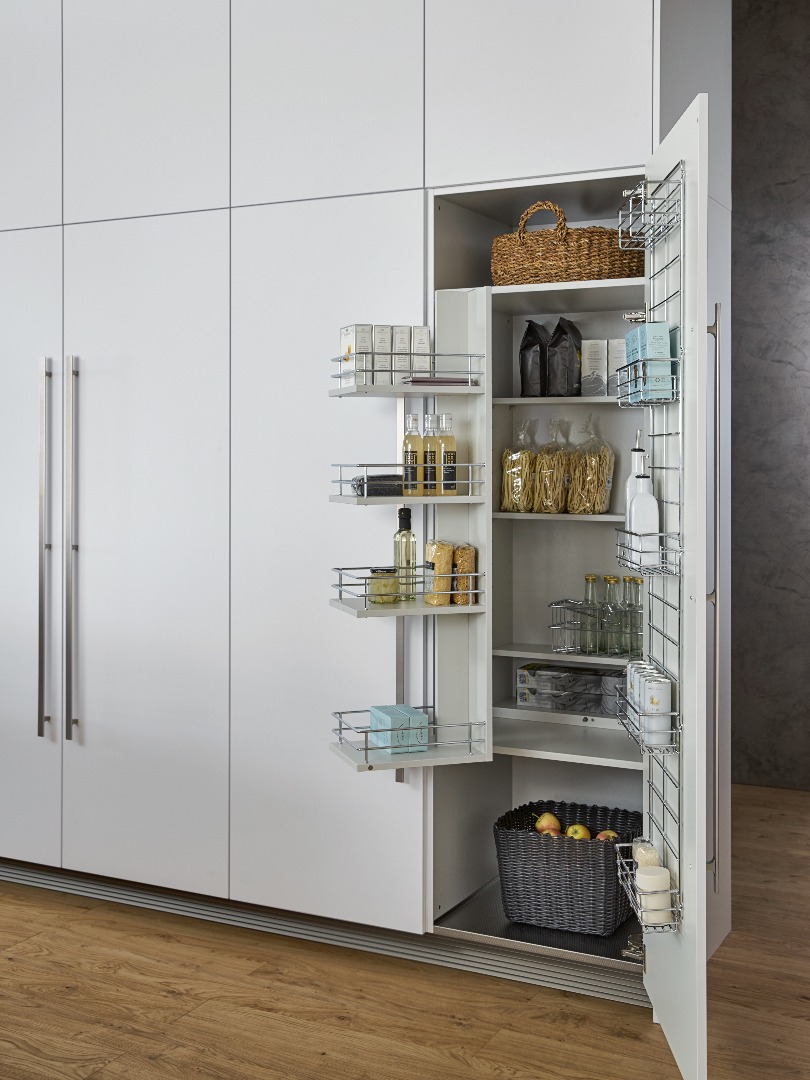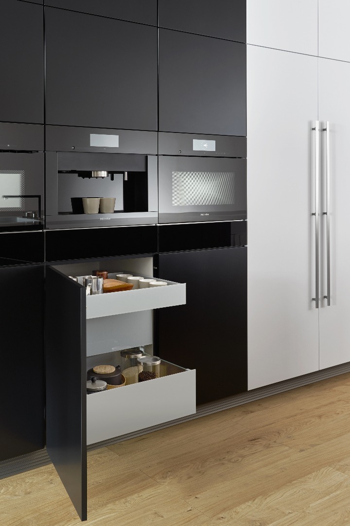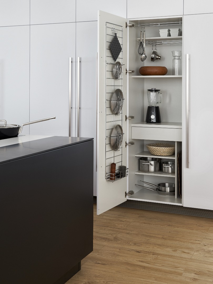 The BONDI range has integrated tall units that sit flush into the wall, designed with a demand for superior kitchen storage