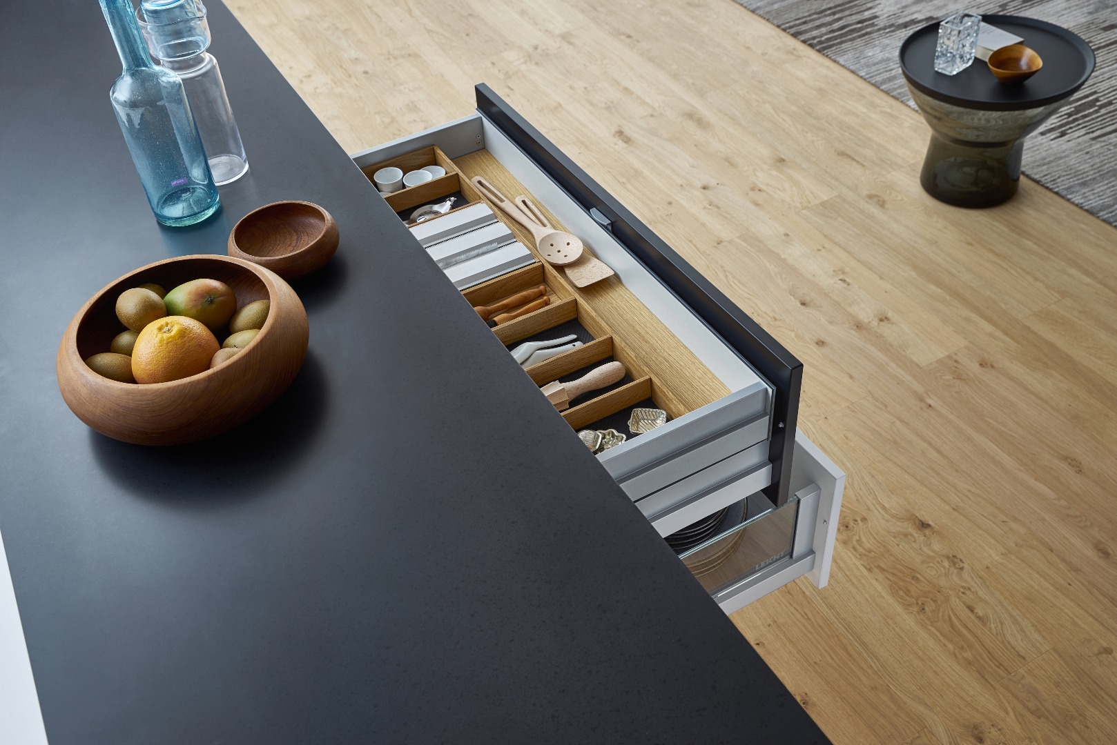 The BONDI | CLASSIC-FS range is quasi-minimalistic. The kitchen design is bold but draws on the aesthetics of late 1050's black and white films which casts a balletic movement to the space.