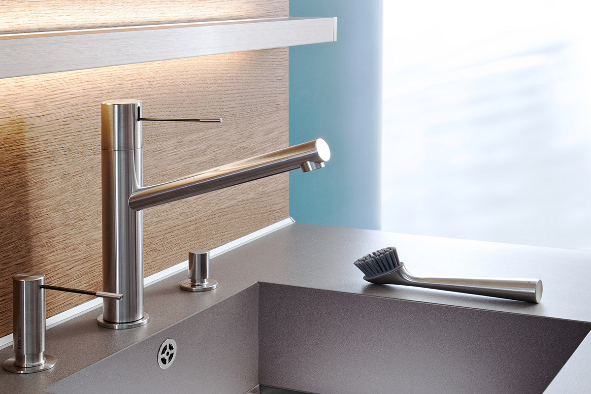 The suspended floor units of the CLASSIC-FS | TOPOS are designed for an open room feel, whilst the lightly suspended kitchen island extends the need for a breathable room.
