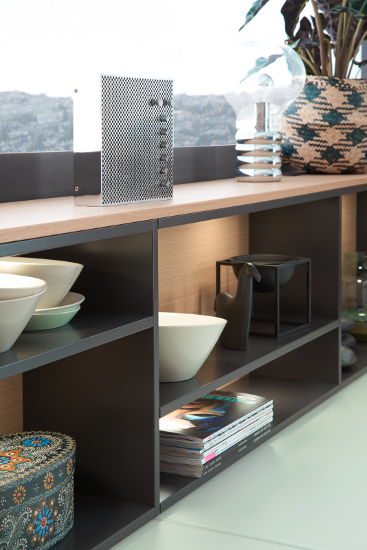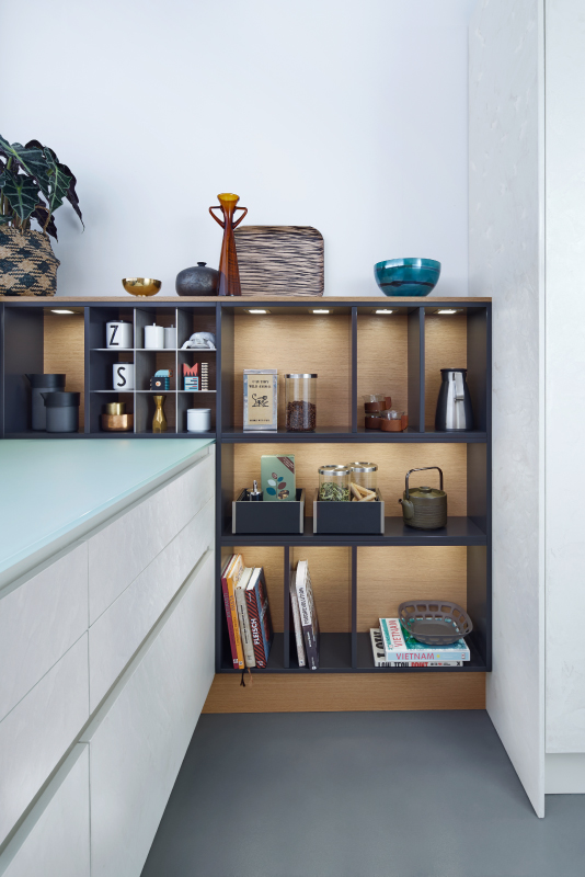 Niche Shelving provides a space to showcase precious design products, house kitchen items, and tuck away essentials such as cookbooks.