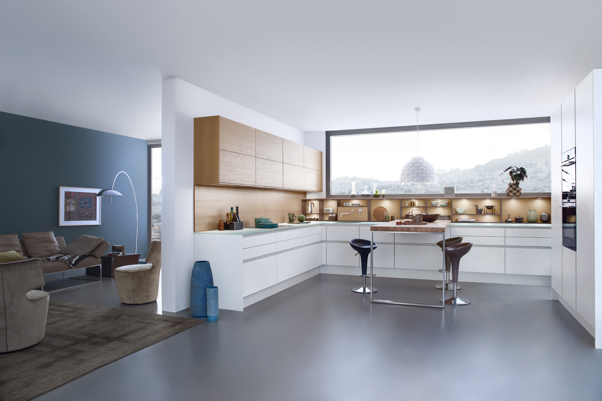The CONCRETE-C range by Leicht places Lacquered Concrete next to Wood Veneer and Glass. The result is an Ultra Modern Kitchen which pulls on a classic beauty.