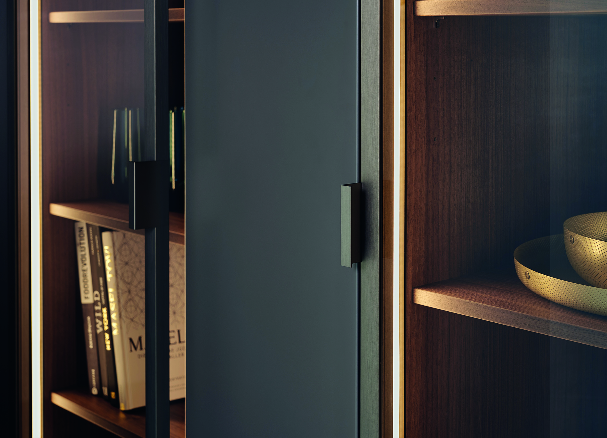 When borders merge: expressive surfaces and homely furnishing elements are effective details which can turn the kitchen and an adjoining living area into a harmonious living environment. The surface range STEEL by LEICHT Küchen, now being presented in the new colour ferro, deploys a range of exciting material accents made of steel and creates a snug modern atmosphere with an expressive look and pleasant feel. VERO is a new range of filigree display cabinets, which create a general harmonious feel with their homely character, with the range accentuating the kitchen‘s role as a living area within the home.