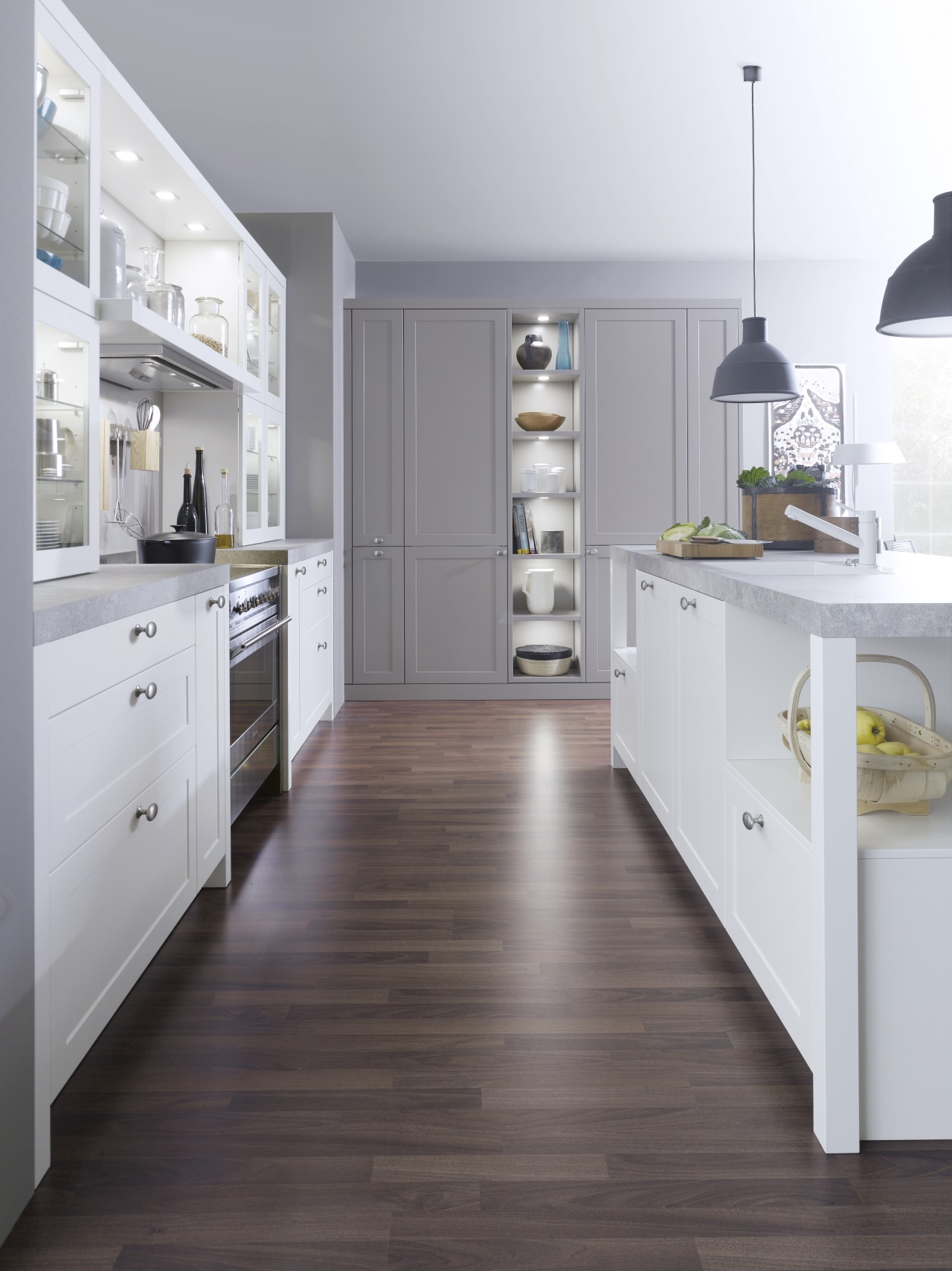 THE CARRÉ-FS kitchen is a bespoke kitchen using silk-matt laqured cabinets and fronts to give a radiant feel. This beauty is achieved through kitchen colour combinations such as white with a light grey, which captivates through a tranquility and elegance only achievable by the leading German kitchen brand, LEICHT. The kitchen is available in all RAL standard colours.